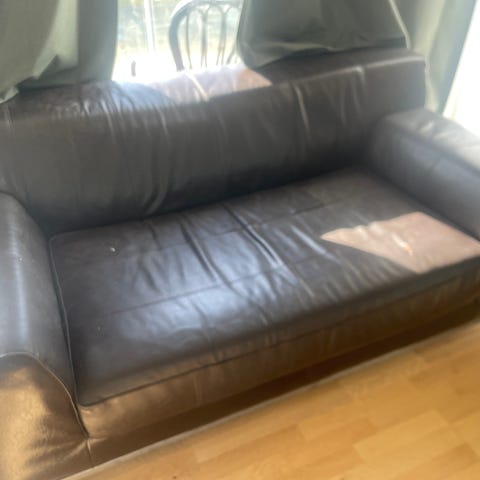 Sort 2-personer-ledersofa gives væk.