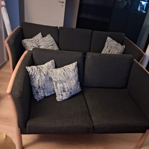 2 stk slidt i stoffet, resten af sofaen fin