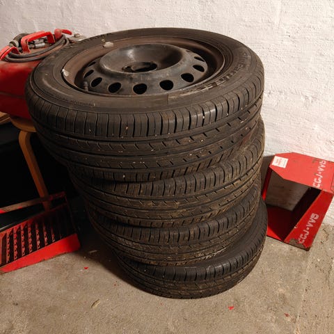 Sælger 4 stk. sommerdæk monteret på stålfælge.