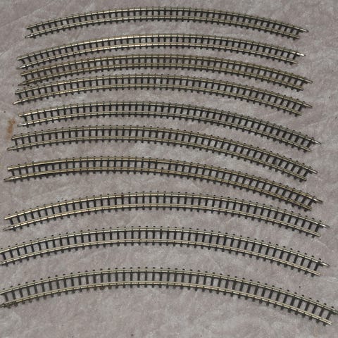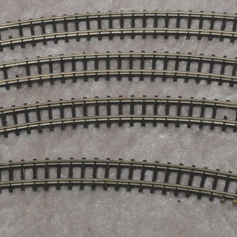 Skinnerne er brugte men fremstår næsten som nye. Desværre mangler der en samlelaske på den ene skinne. Märklin varenummer er 8504.
