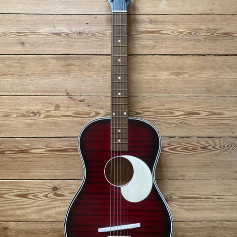 • Har en revne i siden og små brugsspor fra tidligere ejer (kosmetisk og påvirker ikke lyden eller spilleevnen)