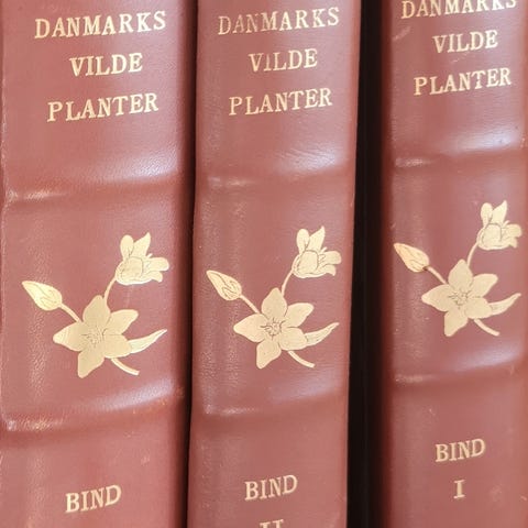 Danmarks Vilde Planter. 3 bind. Med et udvalg af vore nabolandes flora. Udgivet i 1958. Indbundet i velholdte, flotte halvlæderbind.