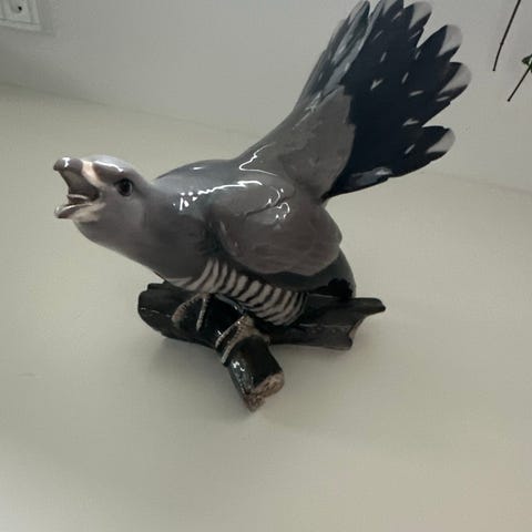 Bing & Grøndahl porcelænsfigur af harlekin i bevægelse med løftet sværd. Figuren er dekoreret med et flerfarvet rudemønster i blå, grønne, brune og hvide nuancer samt hvid krave og manchetter. Den står på en rund fod. Undersiden er mærket med Bing & Grøndahl-stempel og tekst om, at den er til dekoration. Velegnet som dekoration i hjemmet eller som del af en samling af porcelænsfigurer.