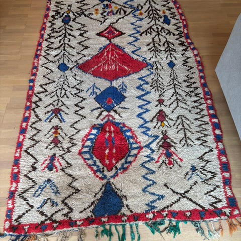 Ægte, håndvævet marokkansk gulvtæppe tæppe / Handwoven Boucheroite rug 🌻