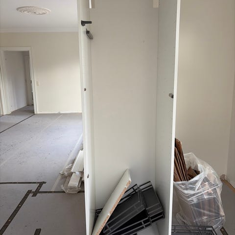 Det store af dem mangler skabslågen til den del der er hylder i og så har jeg malet en af de andre låge med kalkmaling (det burde gå af relativt nemt)