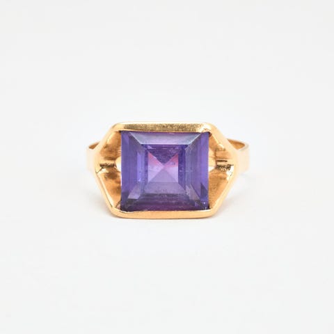 Cocktail ring i 14K guld med en syntetisk safir, str. 54 -
