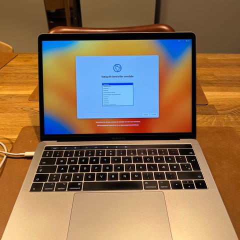 Apple MacBook Pro 13-tommer bærbar computer i sølvfarvet aluminiumskabinet. Modellen har 13" skærm og touchbar