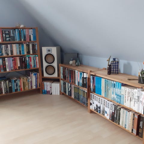 Til salg er i alt to gavle og 10 hylder. Sælges samlet.