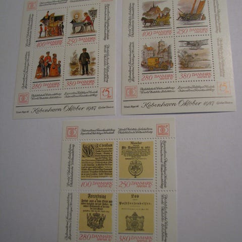 Danmark, postfrisk, HAFNIA MAPPE 87 MED 3 MINIARK, HAFNIA 87 MAPPE MED 3 MINIARK.