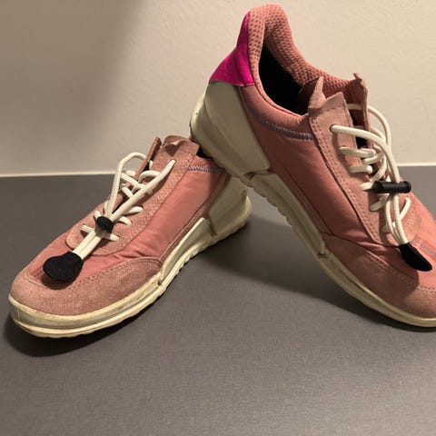 ECCO pige sneakers i str. 30. Skoene er i lilla nuancer med lys sål og elastiksnøre med stopper. Overdelen er i en kombination af tekstil og syntetisk materiale med polstret skaft for komfort. Ydersålen er mønstret for bedre greb. Velegnet som hverdagssko til piger.