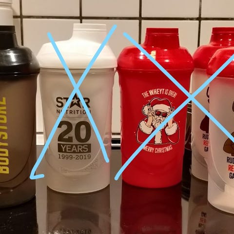 Glas, Glas, Fitness World, Jeg sælger disse protein shakers. Den lille koster 10 og den store koster 15kr.