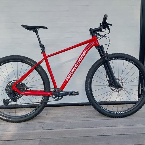 MTB Hardtrail Alu 29 - SRAM NX Eagle 1x12+ Recon RL-Gaffel. En Pronghorn-MTB er en fuldblods XC- og maraton cykel til den, der går op i at komme først. Det er en lynhurtig cykel, der flyver op over bakkerne og holder farten på de flade stykker. Cyklen er i rigtig flot stand og alt virker perfekt på den. Cyklen har aldrig været ud i regnvejr og har derfor ikke kørt i mudder kørt, men er alligevel blevet vasket og smurt efter hver tur. Cyklen er altid blevet opbevaret indendørs. Så, hvis du vil møde foråret på stier og spor i skoven, så er denne cykel er virkeligt godt køb. Cyklen passer perfekt til mig, der er 180 cm, men også til andre, der lavere eller højere. Cyklen har kørt ca. 300 km og nyprisen var 11.000kr.