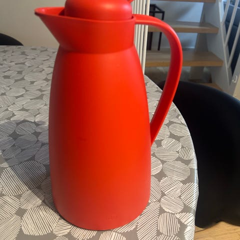 Alfi termokande i sølvfarvet metal. Klassisk kandeform med hank og låg med hældetud. Indersiden er udført med isolerende indsats, som holder drikke varme eller kolde i længere tid. Egnet til servering af kaffe, te eller andre varme drikke i køkken eller spisestue. Sælges som sæt med to ens kander på billederne.