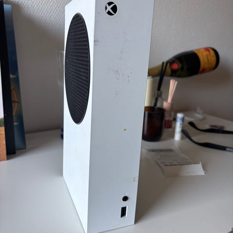 Microsoft Xbox Series S konsol i hvid. Digital spillekonsol i kompakt format uden diskdrev, egnet til gaming med downloadede spil og streamingtjenester. Konsollen er designet til brug med Xbox Series spil og tilsluttes tv eller skærm via HDMI. Velegnet til både enkeltspiller- og online multiplayer-spil med kompatibelt tilbehør som controller og headset.