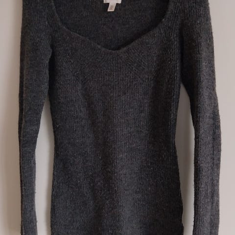 Strikkjole fra H&M, i grå/brun og størrelse M. Brugt 2 gange og kommer fra røg, duft og dyrefrit hjem.