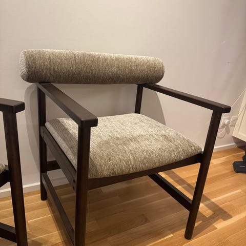 De er to år gammel og har været brugt en måned alt står som nyt Der medfølger to skamler og den ene stol har pumpe til lænden. Nypris for to år siden 19.500. De står i Slagelse angående transport må vi snakke om