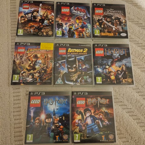 Lego The Hobbit PlayStation 3 spil. Action- og eventyrspil baseret på Hobitten-universet, hvor spilleren følger historien om Bilbo og dværgene i Lego-version. Spillet er på fysisk disk i standard PS3-plastcover og er PEGI 7-mærket.