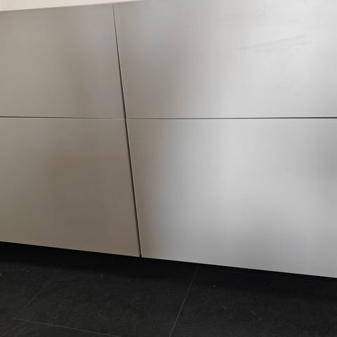 Hvis med tre skuffer og tre låger. Måler 152 cm lang og 90 cm høj, 42 cm dyb