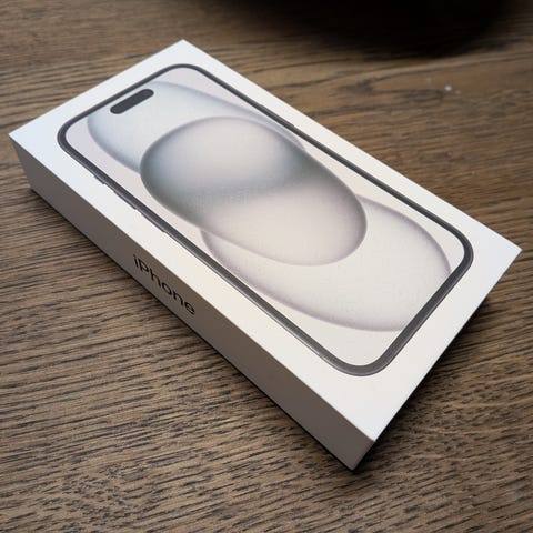 Apple iPhone 15 smartphone med 128 GB intern hukommelse. Modellen fremstår i en mørk/sort farve og leveres i original æske med opladningskabel. Denne var en julegave fra mit arbejde, men jeg har allerede en anden telefon som jeg er glad for, der findes derfor desværre ingen kvittering. Batteri er på 100% den har kun været tændt en gang og derefter lagt ned i æsken igen