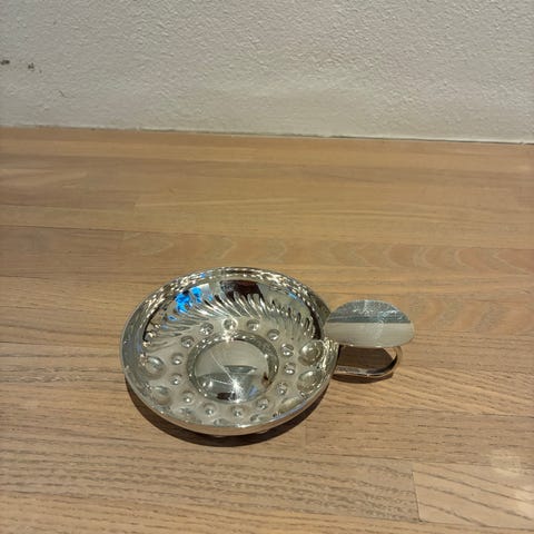 Smukt udført med varme gulddetaljer og blå cabochon -sten. Slank og stilren model med flot patina og almindelig brugsspor.. Solid kvalitet og dekorativt samlegenstand, fra ca 1912-30 erne. Er karakterfuldt stykke håndværk- både funktionelt og æstetisk.