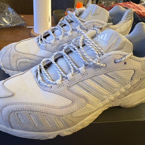 Adidas løbesko i størrelse 37. Modellen er en løbesko med snørelukning, overdel i pink og hvid mesh med syntetiske forstærkninger og ydersål i sort gummi. Skoene har polstret hælkappe og mellemsål i hvidt skum for støddæmpning. Velegnet til løb og anden træning.