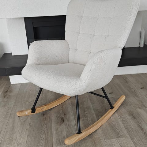 Gyngestol med armlæn – hvid plys
