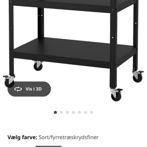 2 stk. Rullebord med 3 hylder sort metal