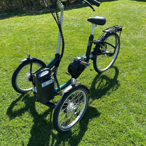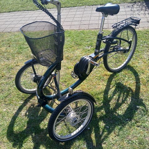 Monark trehjulet cykel med 20" hjul til unisex brug. Cyklen har tre hjul for øget stabilitet og er udstyret med kurv bagpå til transport af bagage eller indkøb. Foran er der monteret kurv og lygte. Modellen har gearskifte i håndtaget og fulde skærme over hjulene. Egnet til daglig transport, korte ture og som hjælpemiddel for brugere, der ønsker ekstra balance og støtte under cykling. Kvalitetscykel (nypris 15.000 kr.) - velholdt og velkørende. Kun lidt rust på saddelpinden.