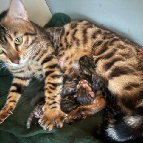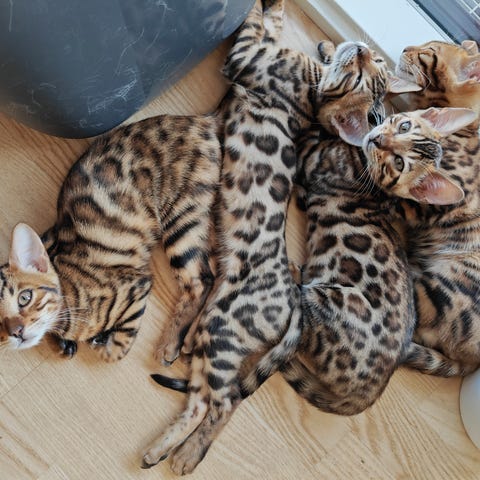 Vi har både mor og far som selvfølgelig kan ses, de er kærlige og sociale og meget flotte i aftegn. Far er bengal med stamtavle. Mor er ren, dog uden stamtavle. Begge er sunde sunde og raske og meget kærlige.