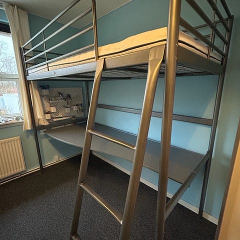 IKEA Svärta højseng med skrivebord og skummadras (90x200).