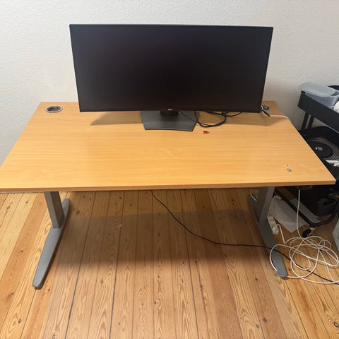 3 ret fede hæve / sænke borde . Monteret med gamle Teakdøre . 500 kr pr. Stk . Befinder sig i Århus.