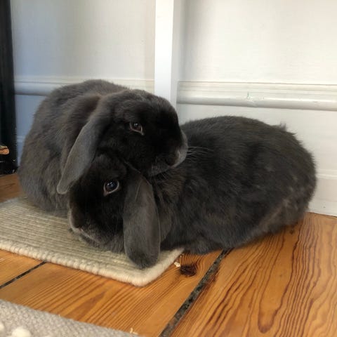 To søde og rolige minilop han kaniner søger nyt hjem.