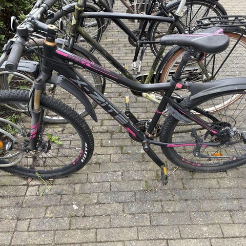 Specialized mountainbike med 24" hjul i lilla farve. Cyklen med punkterfri dæk, cykellygte og kabellås, 21 gear og håndbremser for og bag. Udstyret med affjedrer forgaffel. Kørerklar