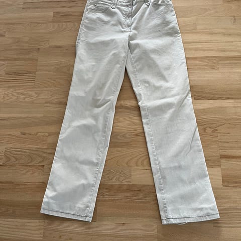 Flotte grå lærredsbukser fra Brax i model Mary. Modellen er med lange ben og god til kvinden med smal talje og med smal / regulær lårvidde. Taljen er med fast linning og med skrå side lommer samt med 2 baglommer med simili sten som en fin detalje.