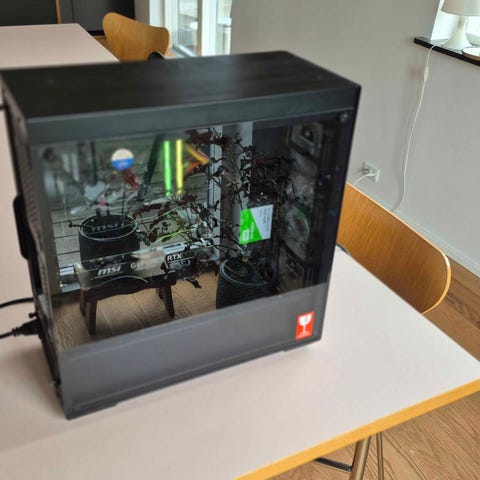 Fin fin pc, samlet i pænt Micro-atx kabinet med temperd glass og rgb.