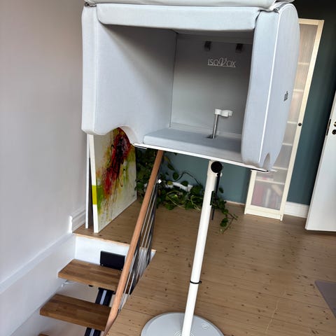 Sælger min sorte Isovox V2, da mit studie setup skal ændres. Oplagt alternativ til en vocal booth, hvis man ønsker at optage eller øve vokaler i hjemmet uden at forstyrre naboer. Den har stået fremme i et hjemmestudie og været brugt flittigt. Sælges uden lampen inde i boksen. Der er brugsspor på stoffet, men der er ingen huller i skummet eller ridser. Stativ medfølger, så den er klar til setup med det samme