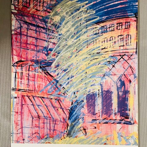 De synlige spor= kanten af plakaten har knappenålsmærker og flosset i det ene hjørne