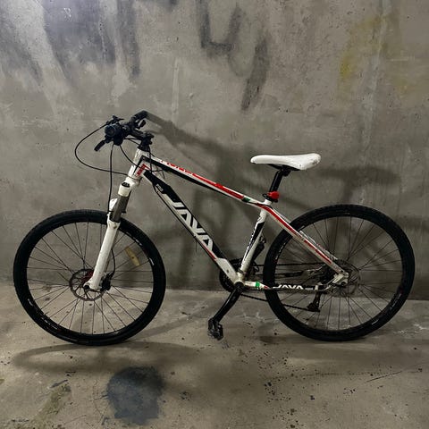 Cyklen er udstyret med affjedring både for og bag, hvilket giver øget komfort på ujævnt underlag. Stellet er udført i en kombination af sølv og blå med gule detaljer. Velegnet til kørsel på grus, skovstier og almindelig hverdagskørsel, hvor der ønskes ekstra affjedring og stabilitet.