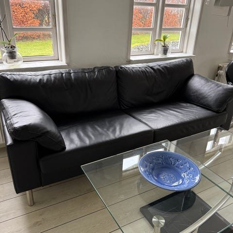 Lædersofa 2 og 3 personers samt sofabord.