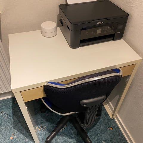 Sælger dette super lækre skrivebord og kontorstol. Skrivebordet er fra jysk og stolen kan jeg ikke huske hvor er fra.