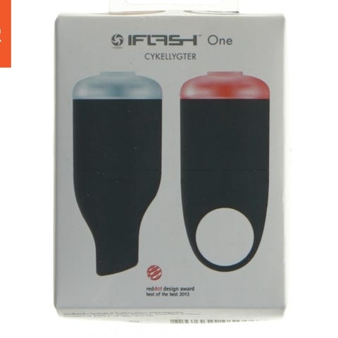 iFlash cykellygte sæt med forlygte og baglygte i sort. Sættet indeholder en hvid forlygte og en rød baglygte samt beslag til montering på cyklen. Lygterne er godkendt efter gældende regler og er velegnede til brug på almindelige cykler. Drevet af batterier (ikke nærmere angivet på billederne). Velegnet til kørsel i mørke og dårlige lysforhold for bedre synlighed i trafikken.