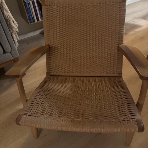 Smuk og klassisk loungestol designet af Hans J. Wegner og produceret af Carl Hansen & Søn.