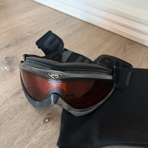 Uvex Cevron skibrille med hvid ramme og gule/amber linser. Justerbar elastikrem med mønster og inderside med skridsikkert materiale. Blød skumpolstring indvendigt for komfort omkring øjnene. Velegnet til brug ved ski og snowboard samt andre vinteraktiviteter, hvor der er behov for øjenbeskyttelse mod vind og sne.