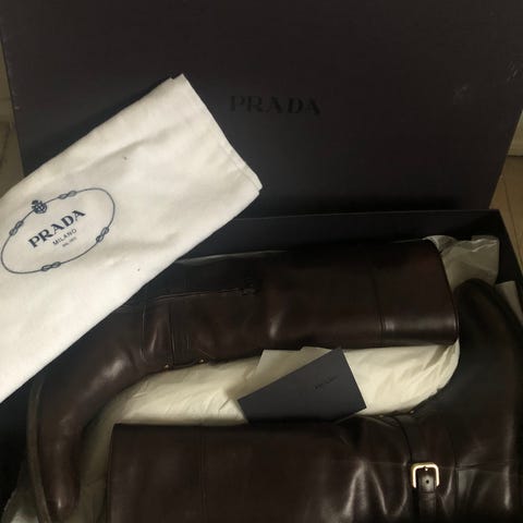 PRADA linea rossa FW 1999 ankelstøvler / chelsea / ridestøvler / motorcykelstøvler i chokoladebrunt læder med tykke vibram-såler. De leveres uden æske, men med original støvpose. Utrolig solid kvalitet og behagelige at gå i.