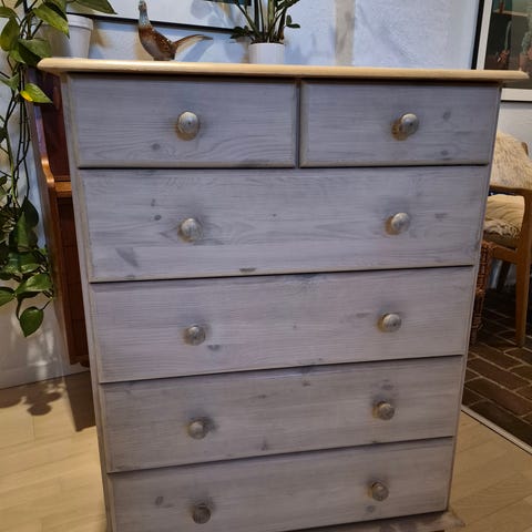 Upcyclet IKEA kommode i rigtig god stand. Den er malet i en støvet grøn og håndtagene er skiftet. Alt fungerer som det skal.