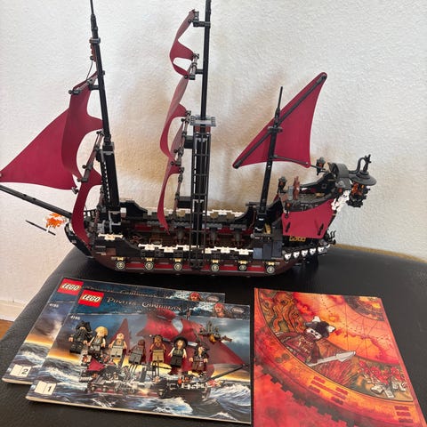 Lego dele til Queen Anne’s Revenge, nr.4195 fra pirates of caribbean og til et andet skib, jeg ikke kender navnet på. Manual medfølger. Der er smådele til begge skibe plus nogle brune klodser.
