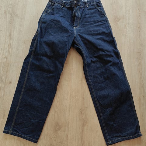 Fremstår i rigtig fin stand - ingen huller - kun lidt slid på farven ved buksekanten (ses ikke i brug). Farven på bukserne er som ny (aldrig vasket). 100% bomuld.