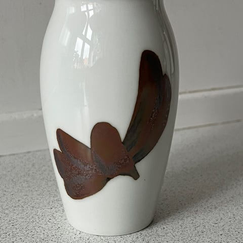 Vase, Vase med lyster dekoration, Bing & Grøndahl, Flot Bing og Grøndahl vase nr. 159 - 5251 med brun dekoration sælges. Den er 18 cm høj og har en diameter på 7 / 10 cm. Kan sende med GLS og DAO.