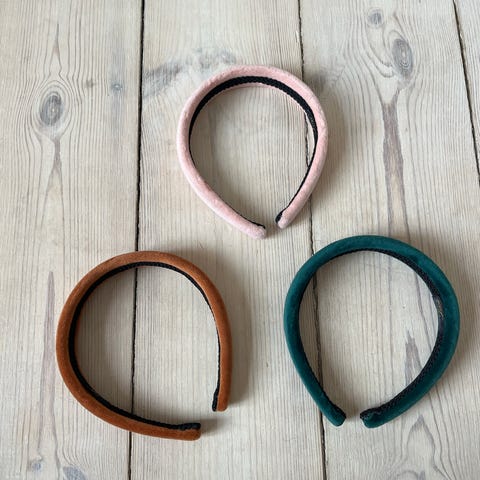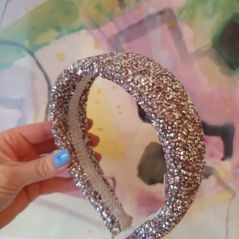 Hårbøjle/ hårbånd polstret og pyntet med perler og pailletter.
