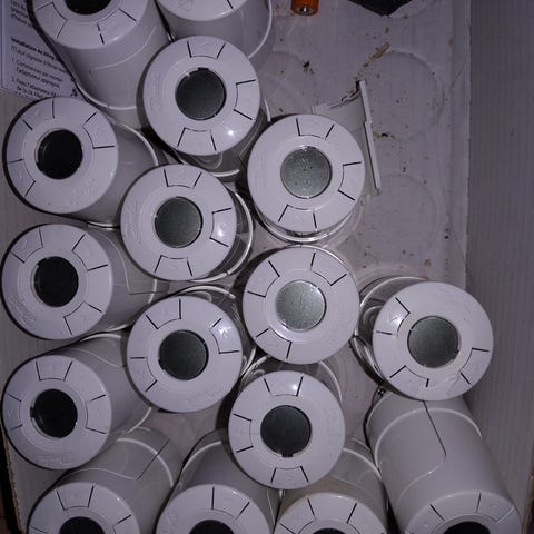 Desuden have 5 yderligere termostater, som kan medfølge gratis. Disse mangler dag plastik-connectoren til radiotor-ventilen... Kan sikkert købes seperat...